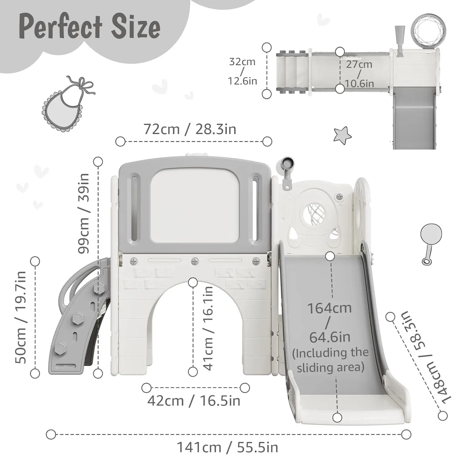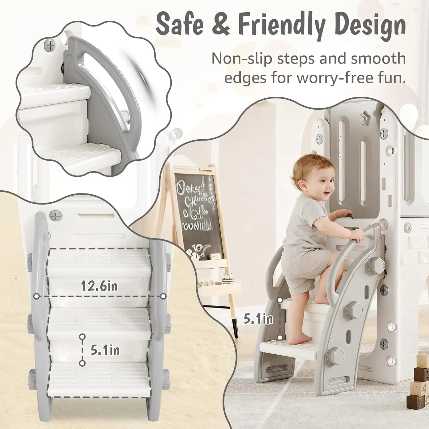 Develops Coordination, Confidence & Creativity: More than just a slide—it's a growth toolkit. Each activity, from climbing to shooting hoops, promotes healthy physical development, balance, and coordination. By stimulating imaginative play and active movement, it provides a joyful, foundational way for toddlers to learn and grow every day.